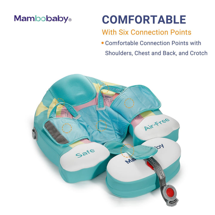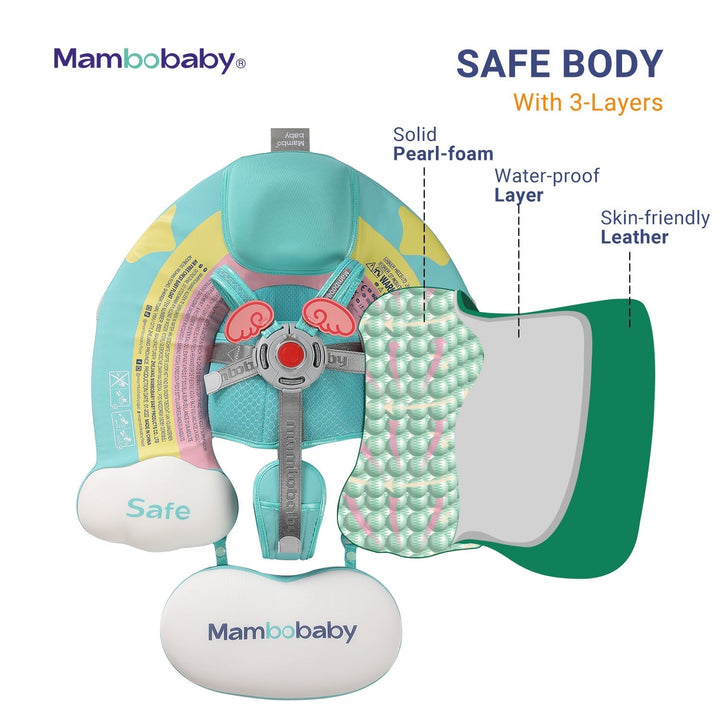 Das Rundum-Design des Mambobaby-Floats verfügt über fünf Stützpunkte, einschließlich eines abnehmbaren Schwanzes, Schultergurten, Bodennetz und eines Schrittverbindungssystems. Dieses innovative Design verhindert ein Rutschen, Kippen und Ungleichgewicht, selbst ohne verdickte Achselpolster und Handpolster. Mit einem wasserdichten Sicherheitsschloss vorne und mehreren in den Vereinigten Staaten ausstehenden Patenten hat der Mambobaby-Float die Sicherheit Ihres Babys oberste Priorität.